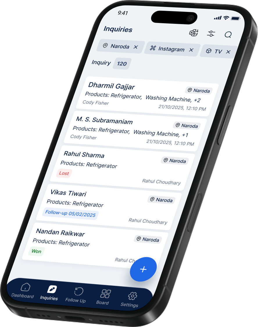 Capture customer details in seconds, set follow-up reminders, and never lose a potential lead again.